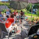 Wir kennen jetzt die nettesten Menschen Güterlohs und aller angeschlossenen Subkontinente. Denn das angebotene Parkplatzangebot beinhaltete nicht nur einen Stellplatz. Die uns erwartenden P. und M. laden uns auf ihre schattige Gartenterrasse zur Erholung ein. Bei Kaffee, Wasser und Bier erzählen wir von uns, unserem Fanclub und erfahren einiges an heute weniger gruseligen Geschichten aus dem geteilten Berlin der späten sechziger Jahre.