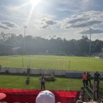Der Anpfiff bestimmt den Tag, so machen wir uns gemeinsam auf den Weg zum Stadion. Am Abzweig zum Gästeeingang trennen und verabreden wir uns für nach dem Spiel. Im Gästebereich riecht es wegen des Arbeitsfleisses des letzten Cowboys etwas streng, aber wer einmal am Bahnhof Alexanderplatz entlang gegangen ist, stört sich nicht am Geruch, sondern muss sich zwingen, sich nicht ständig nach einer herannahenden Straßenbahn umzuschauen. Nichtsdestotrotz gehen Speis und Trank reichlich über die Tresen. Da wir alle vernünftiger werden, ist dank der Temperaturen nicht, wie sicher erhofft, das Bier alle, sondern das Mineralwasser.