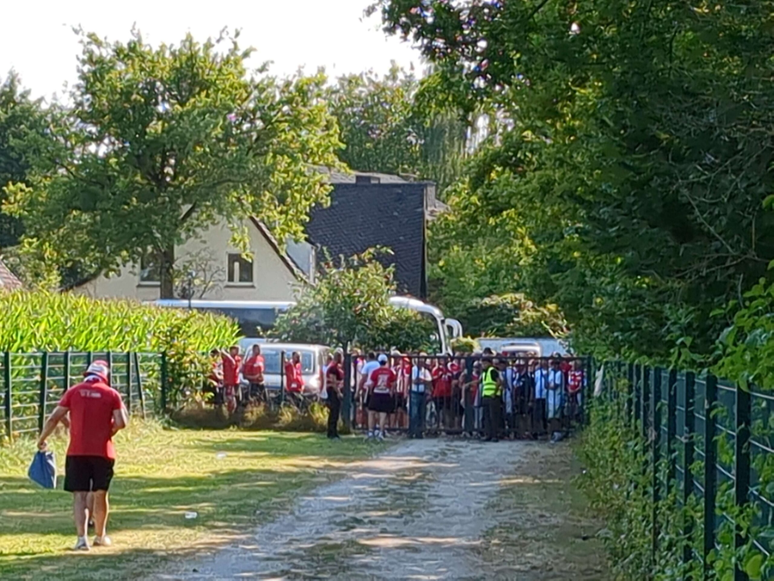 In der Woche vor dem Spiel erreichte uns eine Mail, in der uns ein Parkplatz angeboten wurde. Denn die am Stadion für uns vorgesehenen seien für die anvisierten viertausend Gäste aus Berlin nicht ausreichend. Großes Plus – fünf Minuten fußläufig vom Heidewald-Stadion entfernt. Das klingt in diesen Zeiten so merkwürdig, so dass man versucht ist, ein wenig Recherche zu betreiben. Eine Falle von Gütersloher Hools? Weit gefehlt. Am Donnerstag bekommen wir eine handgezeichnete Wegeskizze zugeschickt.
