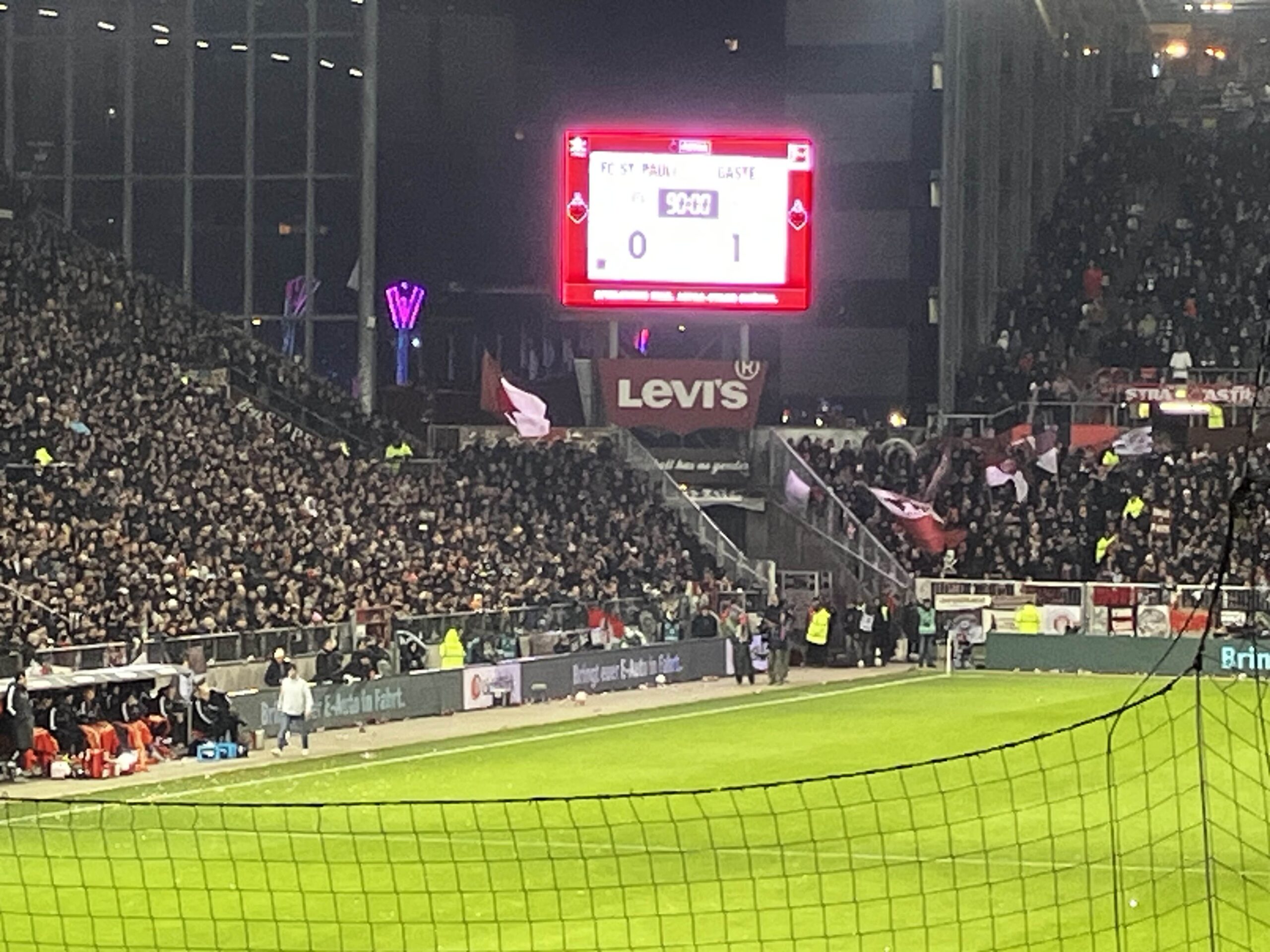 Der Einlass ist mal wieder von einer angenehmen Lässigkeit, die vermutlich jedem innenministerialen Beamten eine Rüge wegen Unterlassung der Dienstpflichten eingebracht hätte. Für uns Reingehende ist es ein Moment der Gastfreundschaft. Und das ist mittlerweile selten genug. Dennoch ist es auf St.Pauli mittlerweile ziemlich frostig. Dass unterdessen angepfiffene Spiel trägt auch nicht bei uns zu erwärmen. So braucht es nach 12 Minuten Schweigen Erleuchtendes, um das Millerntor nicht nur durch den Rummel von nebenan bunt zu beleuchten. Der einsetzende Gesang von allen Rängen übertönt nun auch den Rummelsound. Wir dürfen uns alle einbilden, Rani unterstützt zu haben, als er den Ball über Linie stocherte.