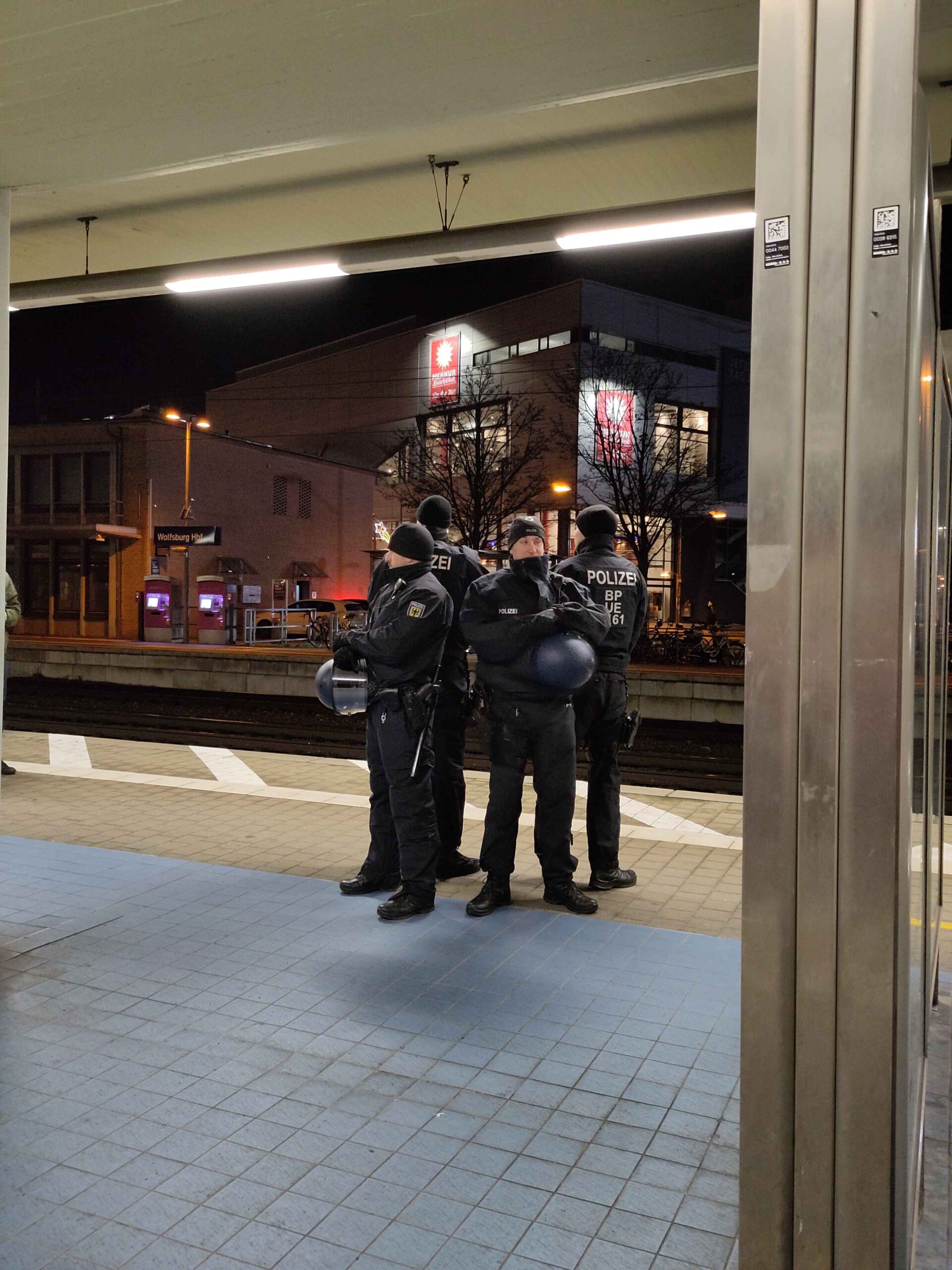 Apropos Menschenverachtung – Die Fahrt nach Wolfsburg stand mit einer angenehm mittäglichen Abfahrtszeit an. Das Grüppchen Reisewilliger sammelt sich bei milden Temperaturen auf einem der beiden Plätze, dessen Namen eigentlich niemand richtig zuordnen kann, vorm Hauptbahnhof. Die Fahrt ist so ereignislos, dass sie als ruhig zu bezeichnen, sie falsch beschriebe. Es hätte also alles entspannt bis zum Anpfiff sein können. Aber wir fahren ja nach Niedersachsen, wo Frau Behrens zeigen möchte, was sie unter Gewaltboykott versteht.