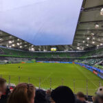 Wir wurden zu einem Fanmarsch eingeladen. Als erkennbar zu bunt für eine als relevant geltende Szenezugehörigkeit dürfen wir unbehelligt das Geviert verlassen. Nicht die flirrende Stadionatmosphäre drängt uns zum Wolfsbau, sondern das Wissen um die Pingeligkeit des Personals am Eingang. Und zumindest der Zeilenknecht wird nicht enttäuscht und es ist angesichts des folgenden Umgangs mit unserer Szene aber keiner weiteren Erwähnung wert.