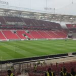 Das in Bad Cannstatt, einem von dreiundzwanzig Stadtbezirken, gelegene, Stadion heißt noch immer wie eine ganz schlimme Autoimmunerkrankung. Der Badeort selbst ist von Untertürkheim, Zuffenhausen und Stammheim mehr oder weniger umzingelt, also von hochpreisigen Autobauern („wir sind eure Hauptstadt…“), denen grad ein wenig die asiatische Kundschaft ausgeht und einer Einrichtung für Verhaltenskorrektur, die ihre Aufsichtspflicht auch schon mal etwas großmaschiger wahrnimmt.