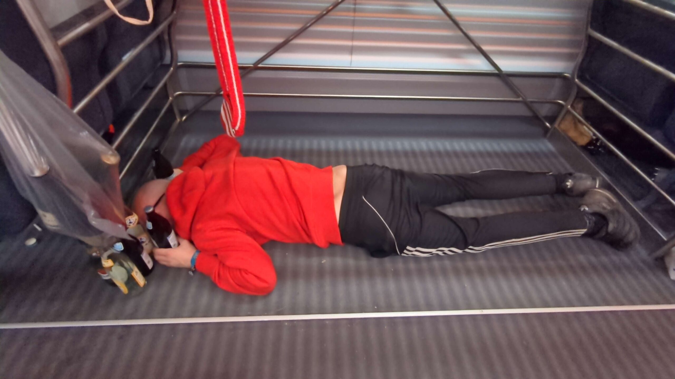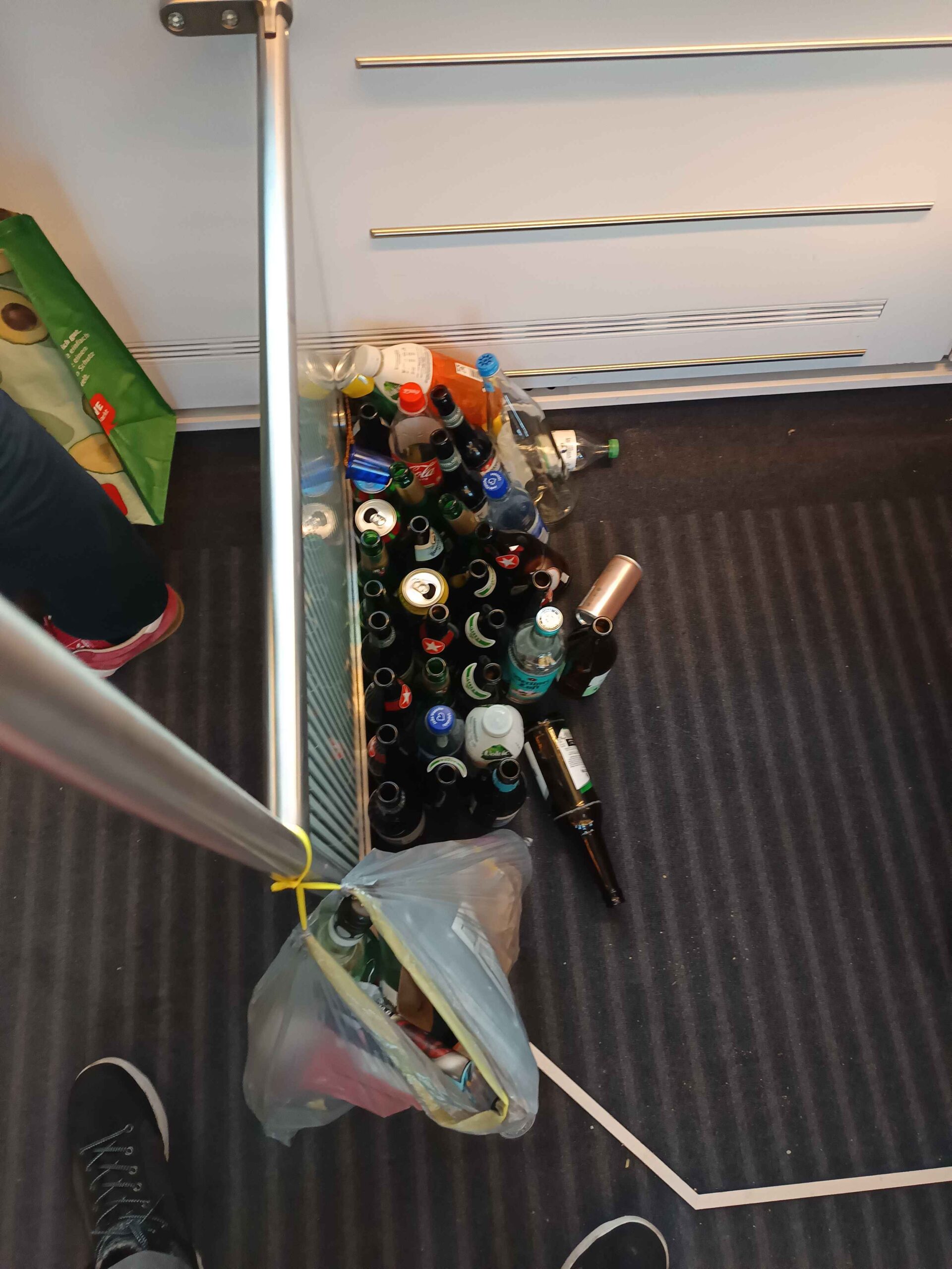 Die kurze, aber letztlich enttäuschte Hoffnung auf einen Sonderzug ließ unsere Reisegruppe sichtlich anwachsen, die auch nach der Absage desselben nicht schmolz. Wir machten unseren eigenen Sonderzug. Der reichlich mitgebrachten Getränke Herr zu werden, war die Herausforderung der Hinfahrt.