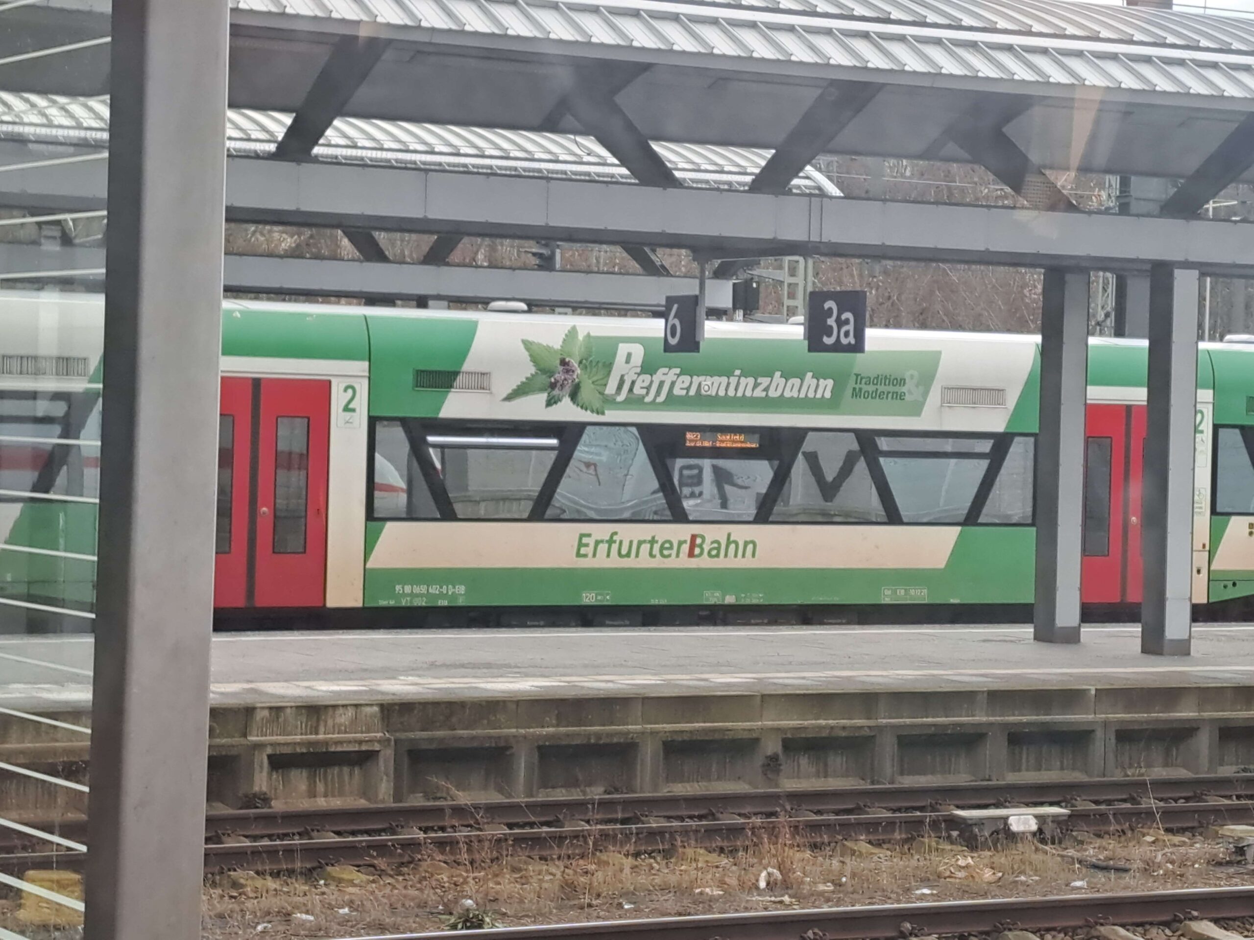 Und schlummern ein wenig bis zum ersten Halt in der Stadt des Händel. Der Versuch, eine Rauchpause daraus zu machen, muss als misslungen verzeichnet werden. Beim nächsten Halt soll es aber gelingen – wieder einmal Erfurt. Allein diese beiläufige Erwähnung zeigt im Übrigen die Richtigkeit meiner vornehmen Zurückhaltung in Bezug des Lobgesanges auf die Nürnberger Bratwurst. Denn alle Wege südwärts führen für uns durch Thüringen.